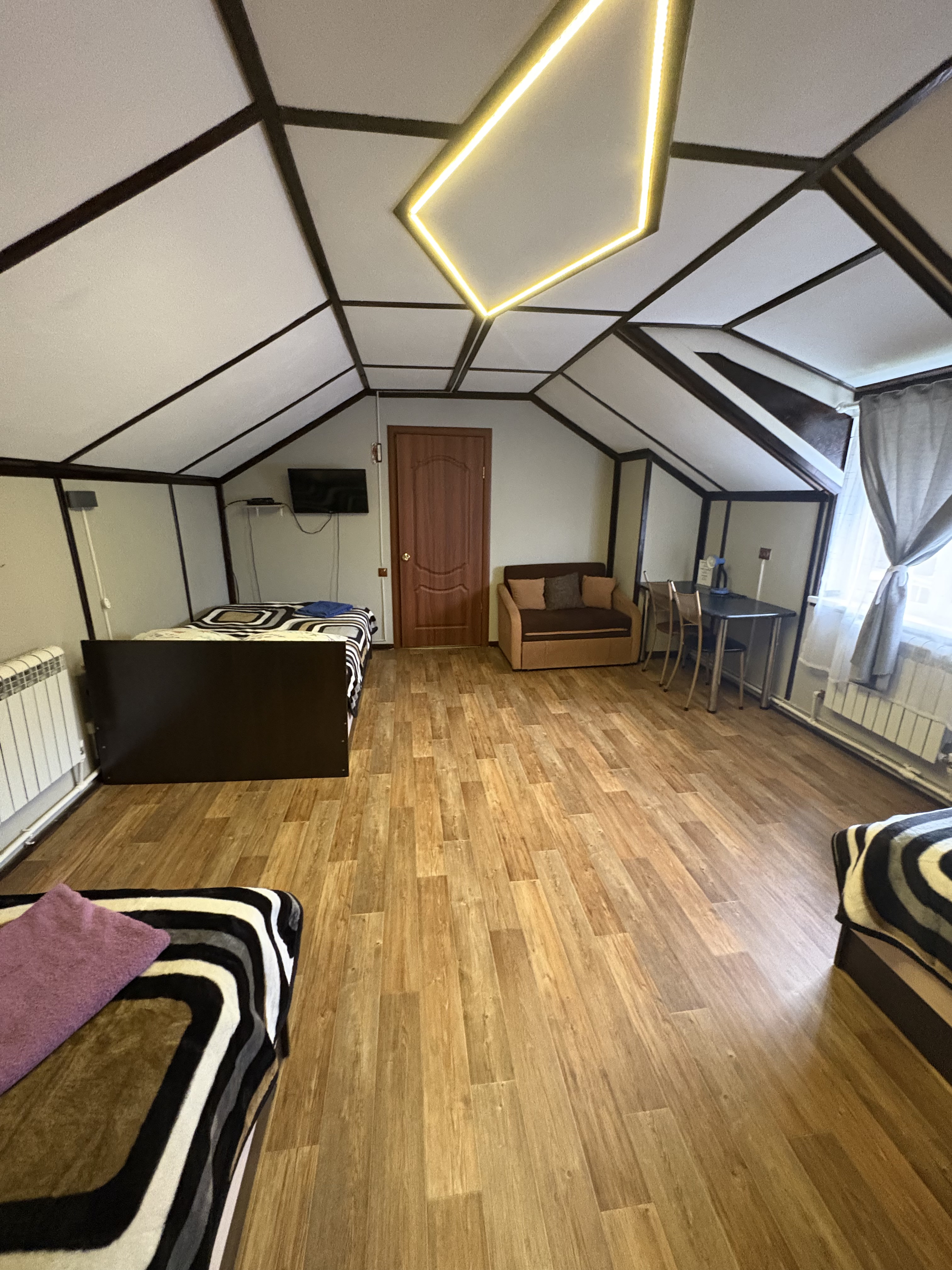 - четыре спальных места (4 + 3 - три двухспальных кровати (120 см. шириной, кресло-кровать)